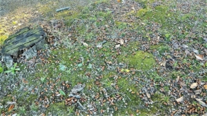 高い気がした古墳の頂上だが、「ヤマレコ」の記録では標高61m。今回歩いた中では4~5番目くらいの標高。「カリヨンの丘」に向かって下りるが、大量のドングリで滑りそう~😰💦