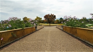 🔹 橋の手前から右手に下りていくと、集いの丘の東裾に広がる「馬見花壇」北エリア
