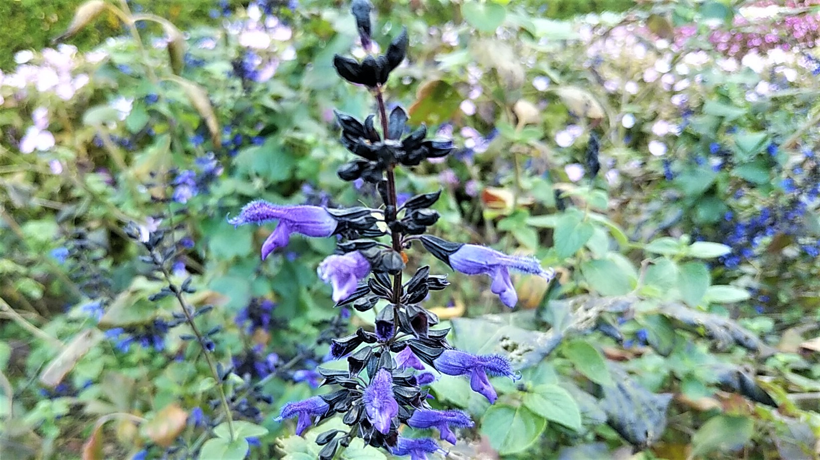 サルビア・レウカンタ アメジスト・セージとか、メキシカンブッシュセージとか呼び方が多いですね。それにサルビアの仲間は種類が多い!