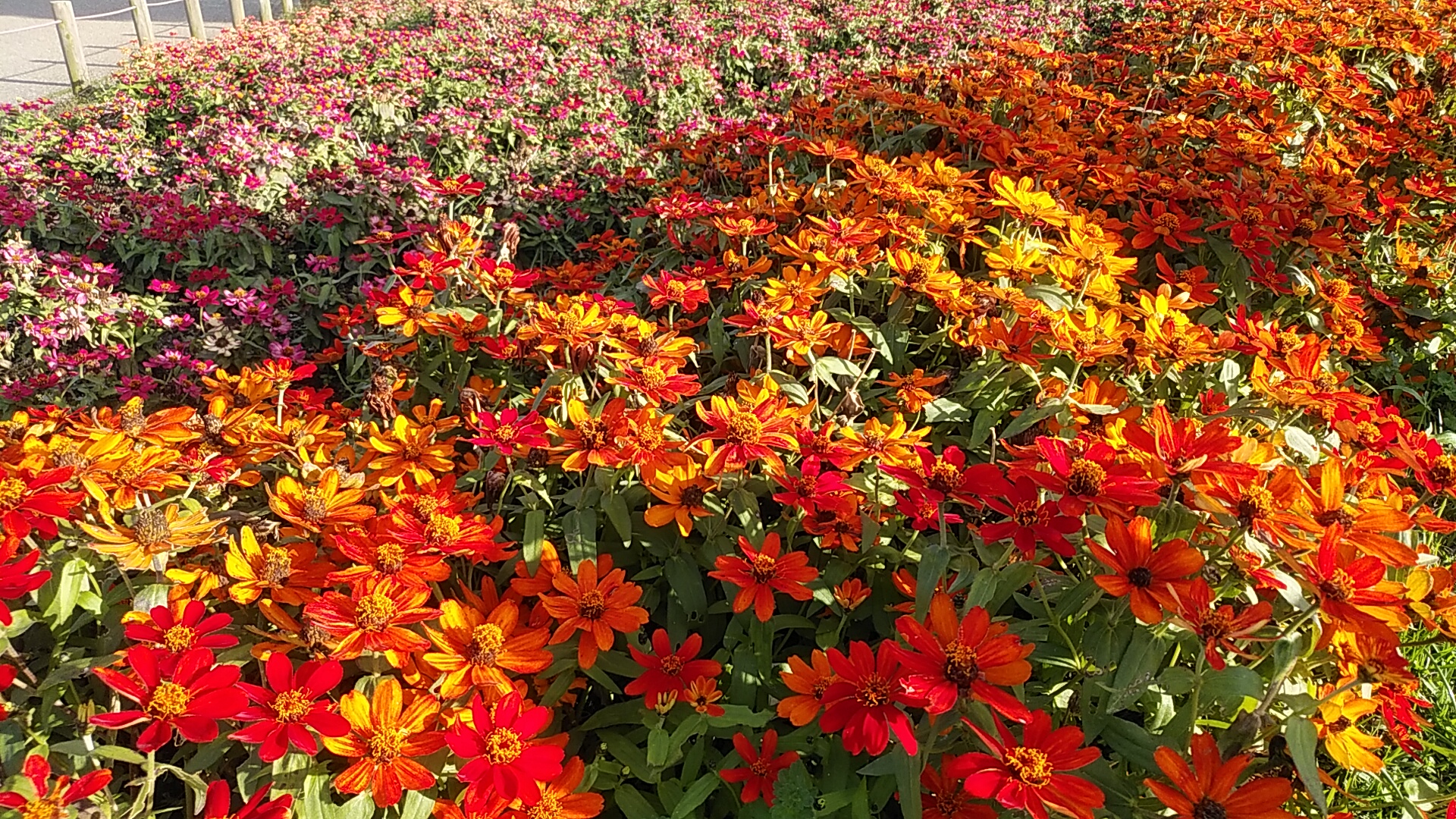 🔹 トンネルぬけて一段と華やかな北エリアへ。ケイトウ(鶏頭)も色とりどり。