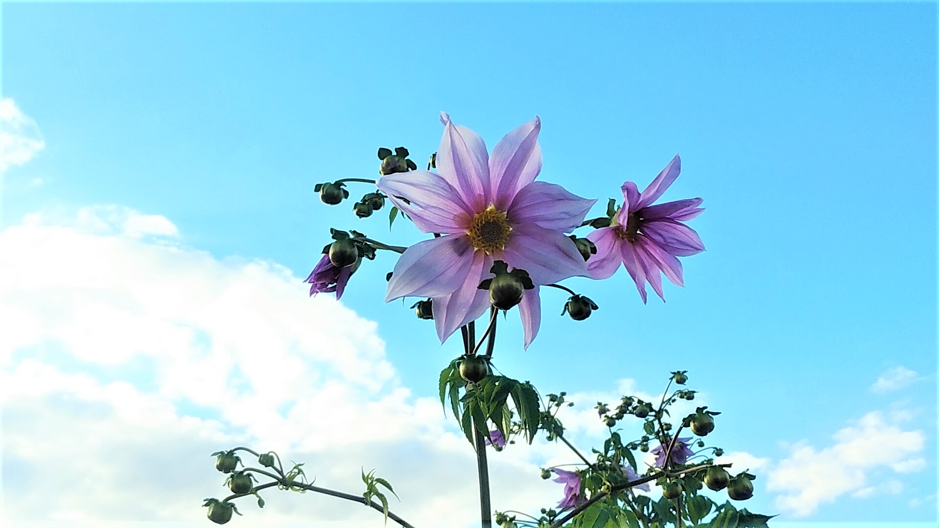 橋の欄干外の両サイド、県道14号桜井田原本王寺線沿いの土手から背を伸ばした皇帝ダリア(ツリーダリア/キダチダリア)に艶やかな花が咲き始めた。つぼみをたくさん付けているし株数も多いので、盛期には花笑み橋をとても華やかに飾ることだろう! 手が届くけど、絶対に摘んじゃあいけません!よ、、「花摘み橋」では有りません (^_-)☆