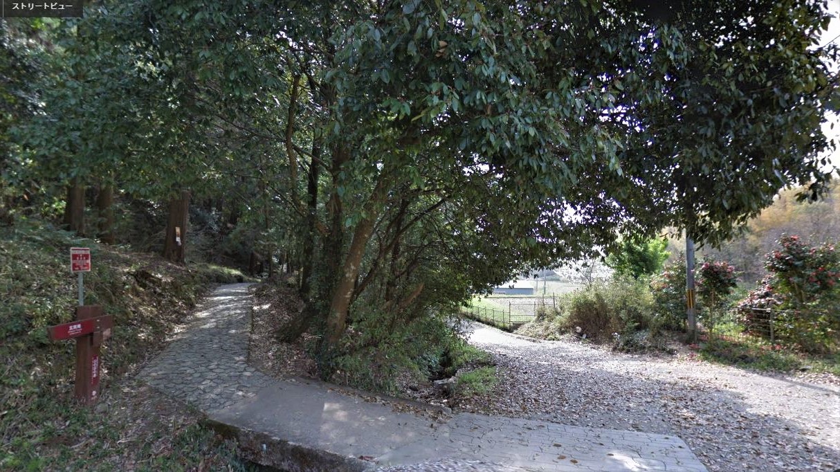 その先は下り坂で、竹やぶを抜けると「玄賓庵」から南の梅園傍の道標の有る地点に出る。(上下ともGoogleストリートビューより拝借 m(_ _)m)