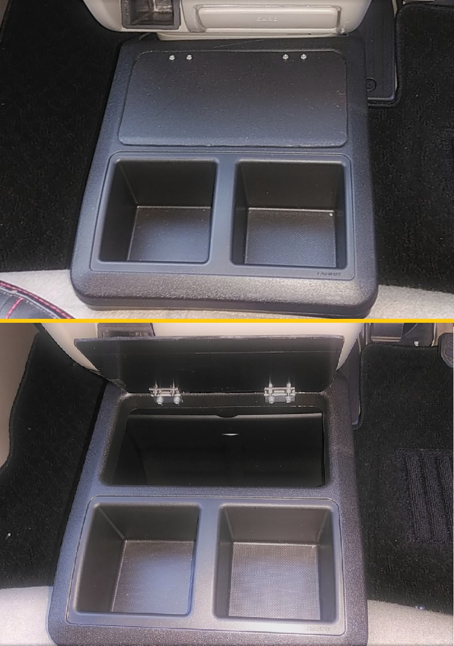 ダストボックス部を取り外さないと車側の「インパネアンダーボックス」の蓋が開けられず、製品説明にある「シークレットスペース付き」が、こちらも同様の効果に、、、以上で完成V(^_^)V