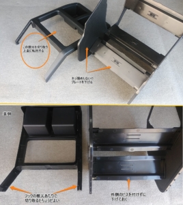 製品の通常はこの状態なので、このままでも良いが、ダストボックスが丸見えなので、カットしたプレートで蓋を作成して取り付ける。