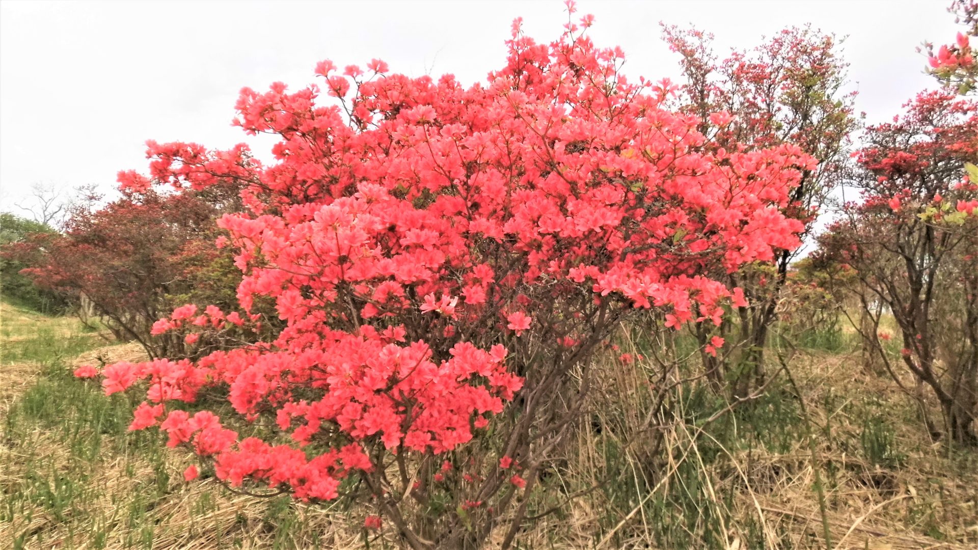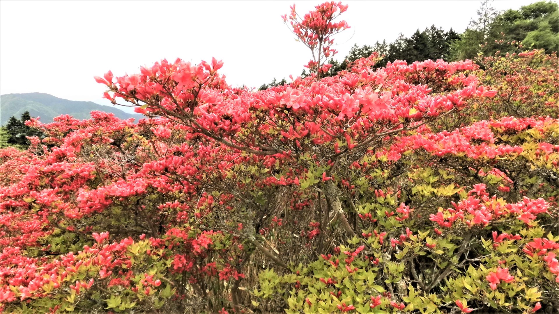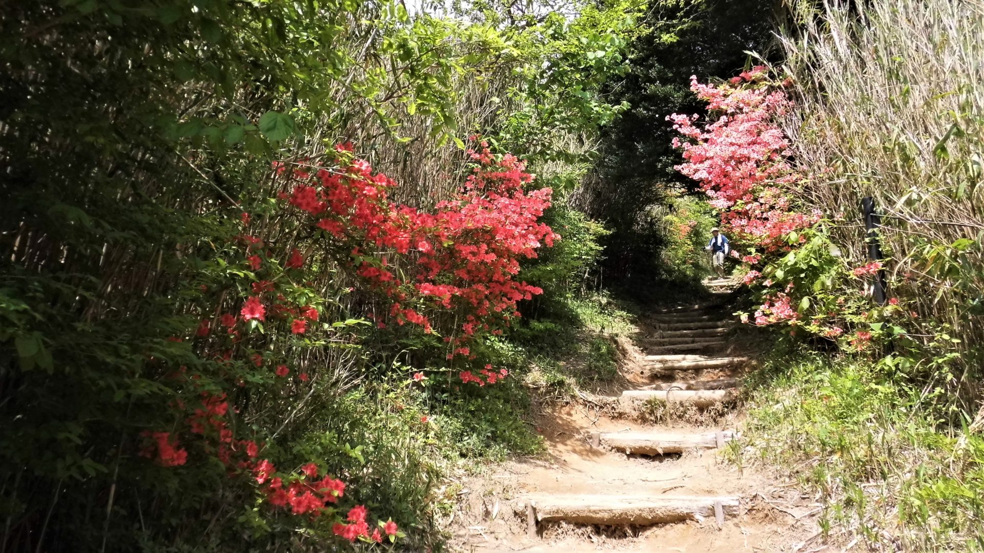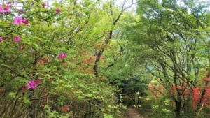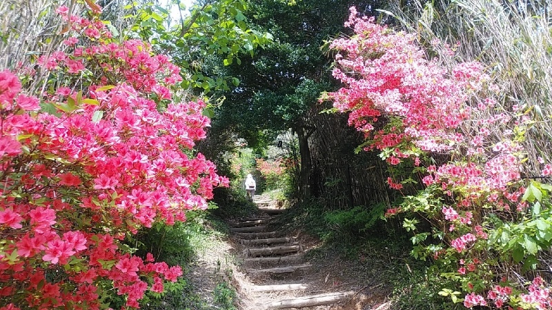 引き返す下り道は、安堵感と目線の違いもあるのか、一層ツツジが映えて、膝や足腰の痛みを和らげ、楽しませてくれる。