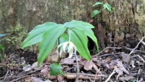 アマドコロ (甘野老) 登りでは気付かなかった甘野老、清楚な花をたくさん吊り下げている。
