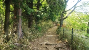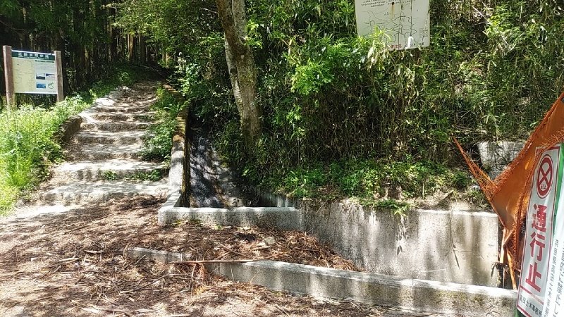 水音の響く登山道のゆったりした階段を登りゆく。初めての葛城山登山、頂上のツツジ園への期待感が膨らんで更に続く林間の道が心地よい,、、が、、、(-_-;)