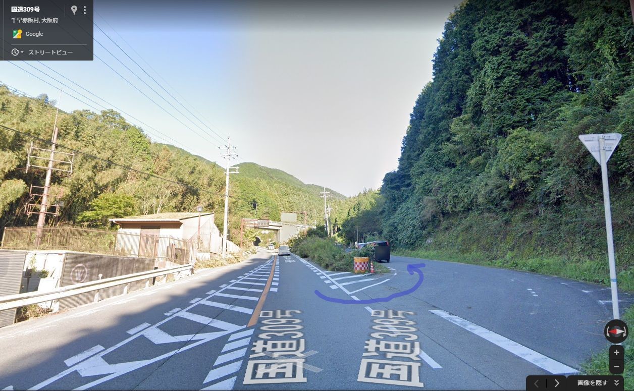 大阪側からのGoogleストリートビューでは、どちらも「国道309号」の表示が現れる。