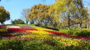「昨年を大きく上回る約50万株のチューリップなどの花々が咲き誇り、音楽ステージやおいしい食事など、楽しいイベントも盛りだくさん。草花のほか、古墳や池、遊具や芝生広場などもあり、散策やピクニックにおすすめです。」