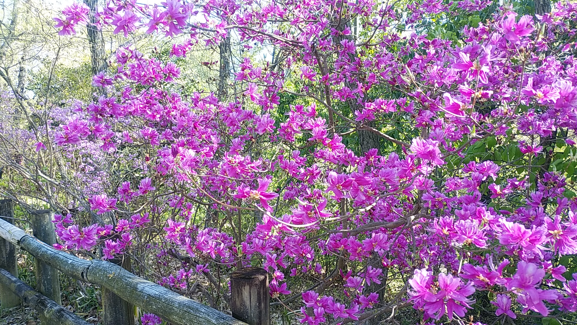 緑道分離帯の木立の中も、、、、これまでのミツバツツジと相まって、とても美しい光景が続きます!