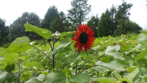 🔸トンネルを拔け北側の「花見茶屋エリア」。ルドベキアとヒマワリの共演、、、というより、矮性のヒマワリは黄色や赤っぽいチェリーブランディーのルドベキアの勢いに影が薄い感じ。^^;