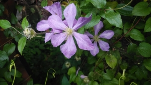 トンネル手前のつる柵に、クレマチス(テッセン)。花期が長い花で、来るたびにぽつぽうと咲いている。
