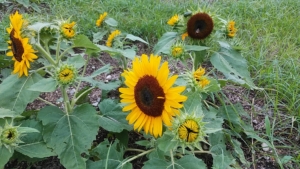 円形花壇にもヒマワリがたくさん植栽されているが、まだ開花していないので、これからが楽しみ。